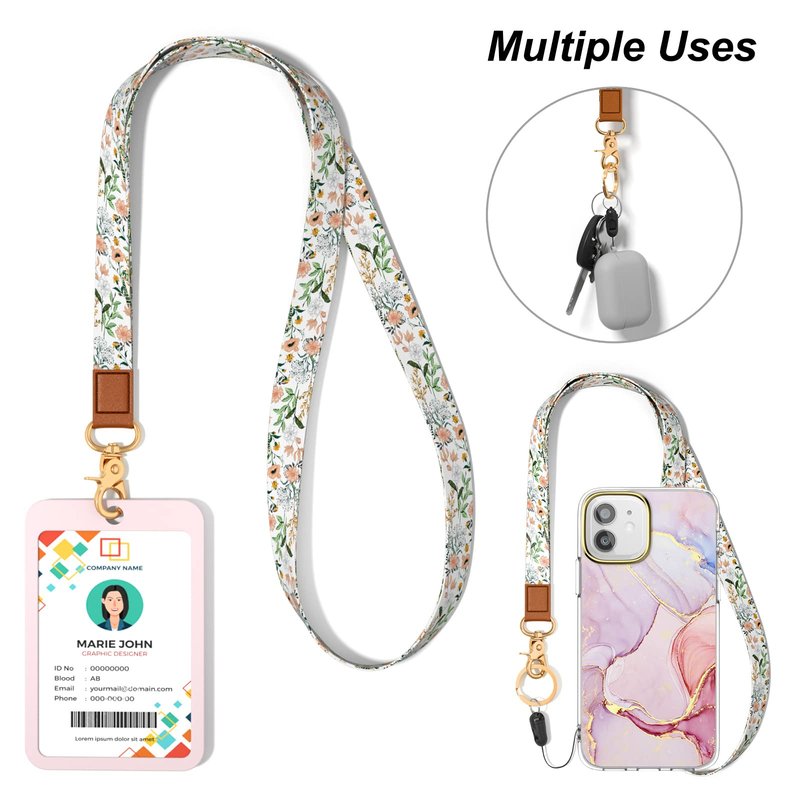 - 【Fashionable Lanyard for Keys】Lanyard key chain holder with unique design, simple but fashionable, it matches with your youth and vitality & individuality. Available in multiple style, boho, floral, marble, leopard. Great eye catching colors that varies pink, blue, black, red, orange, purple.