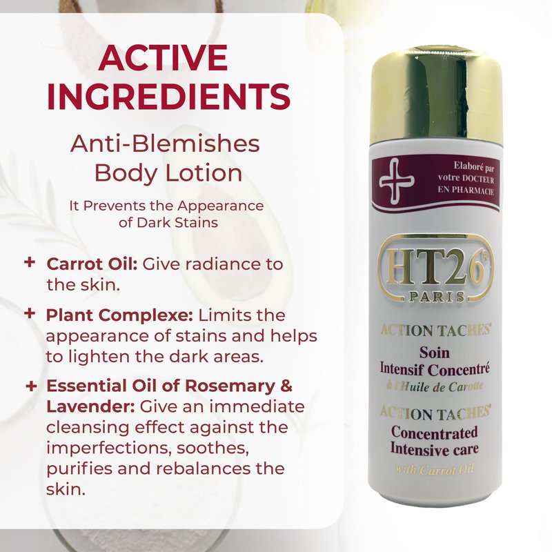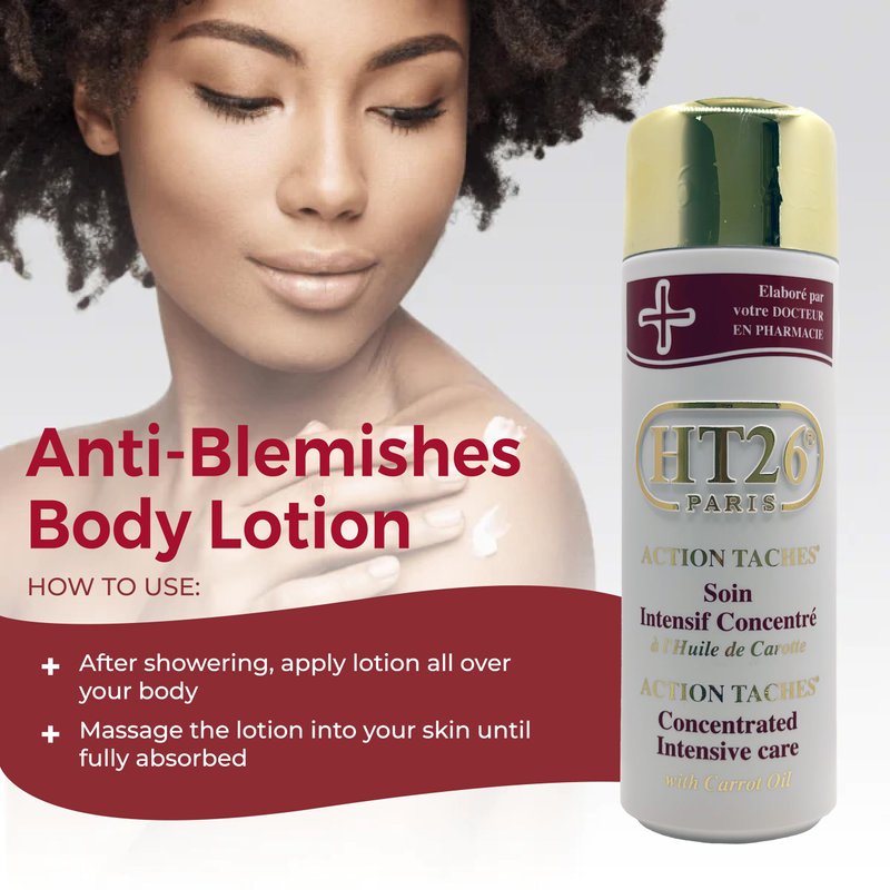 - Enhanced Radiance for Melanin-Rich Skin - HT26 Body Lotion is designed to address common concerns with precision and care. Feel the luxurious embrace of the carrot oil-infused formula for smoother, more radiant skin - elevating your daily self-care experience with a touch of indulgence.