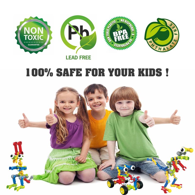 - Easy to Build : This building games toys are coming with 109 piece bright colorful skeleton building blocks with unique design which are easy to build and very suitable for kids ages 3-4-5-6-7-8-9-10-11-12 to assemble without any other extra tools , easy for kids assemble and disassemble without parents help !