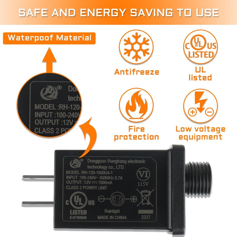 • Multiple modes: the transformer for Christmas tree light has 8 function modes, combination, wave, sequence, slow fluorescent, flash slow fade, flash/blink, stabilized, which is enough to satisfy your usage needs.