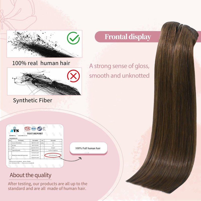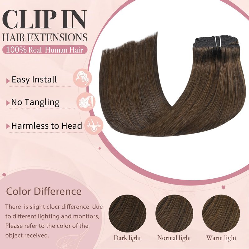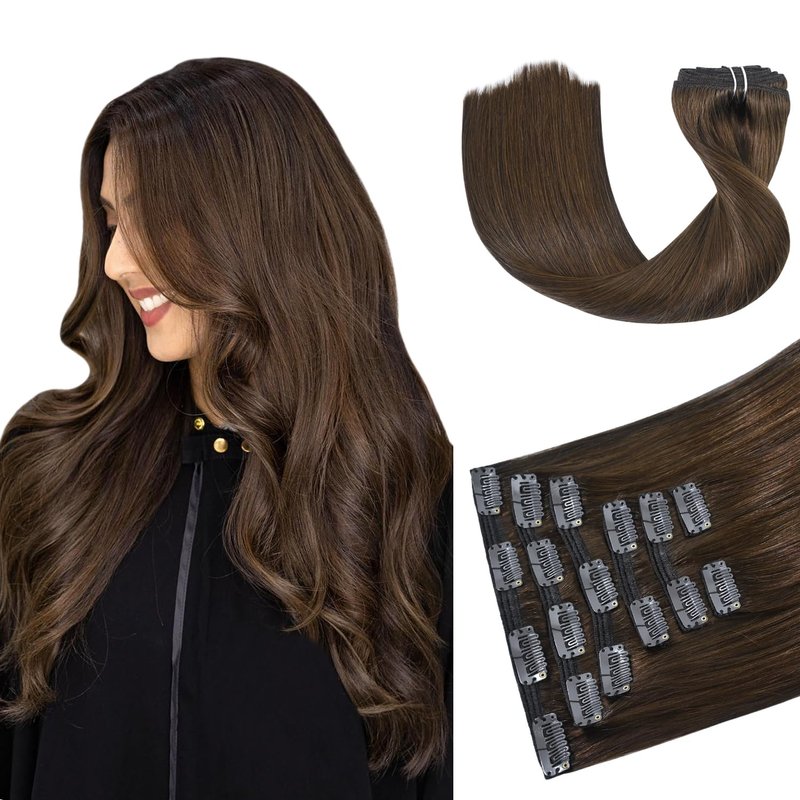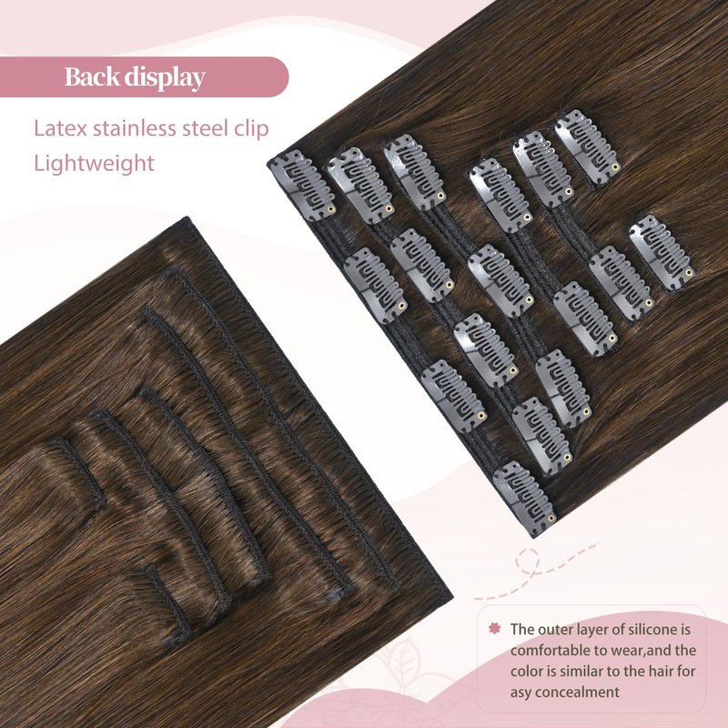- Brown Hair Extensions Material Quality: 8A grade human hair, 100% real human extensions, no tangling, no shedding. silicon-backed clips are strong, hidden & lightweight, protect your natural hair,ensure your hair sits naturally