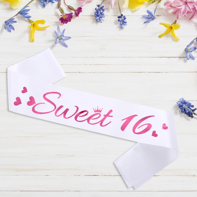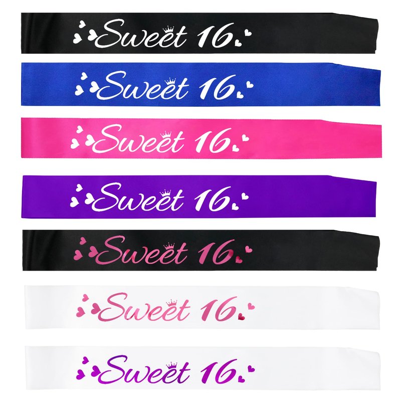 - CELEBRATE IN STYLE: This quirky 16th birthday sash lets the birthday girl proudly announce that she's Sweet 16 with her age displayed in bold text