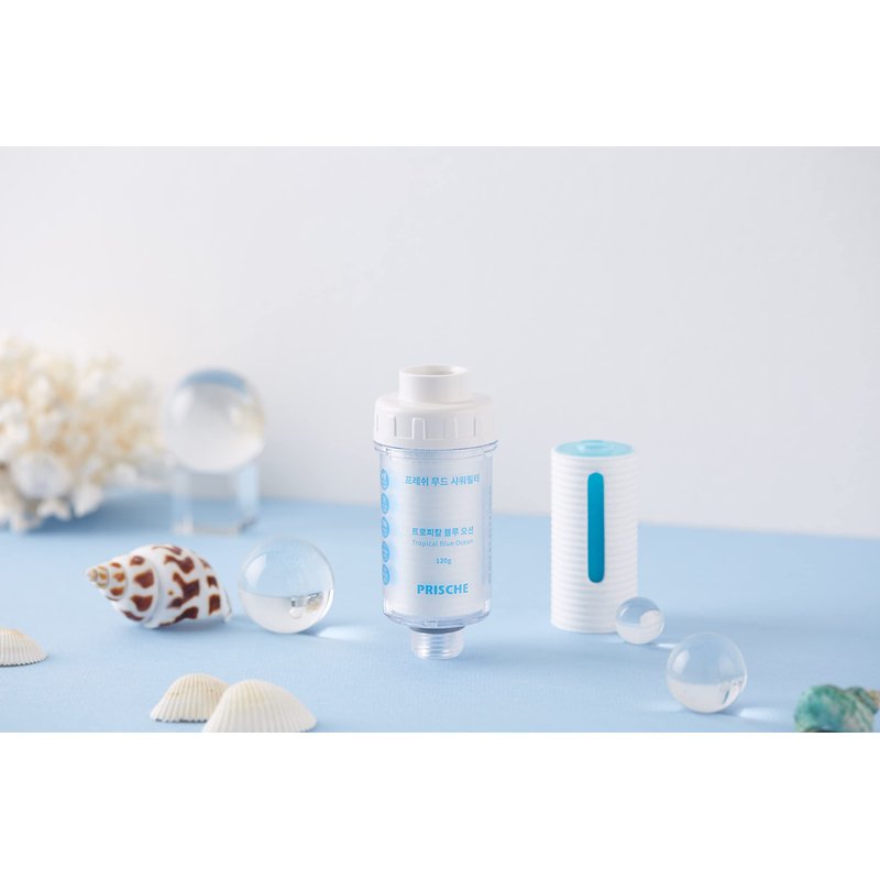 HubiCare Shower Infuser - Vitamin C Shower Filter, Hard Water Softener, Water Purifying, Chlorine & Fluoride Shower Filter, Head with Beads, Helps Dry Skin & Hair Loss (Tropical Blue Ocean)