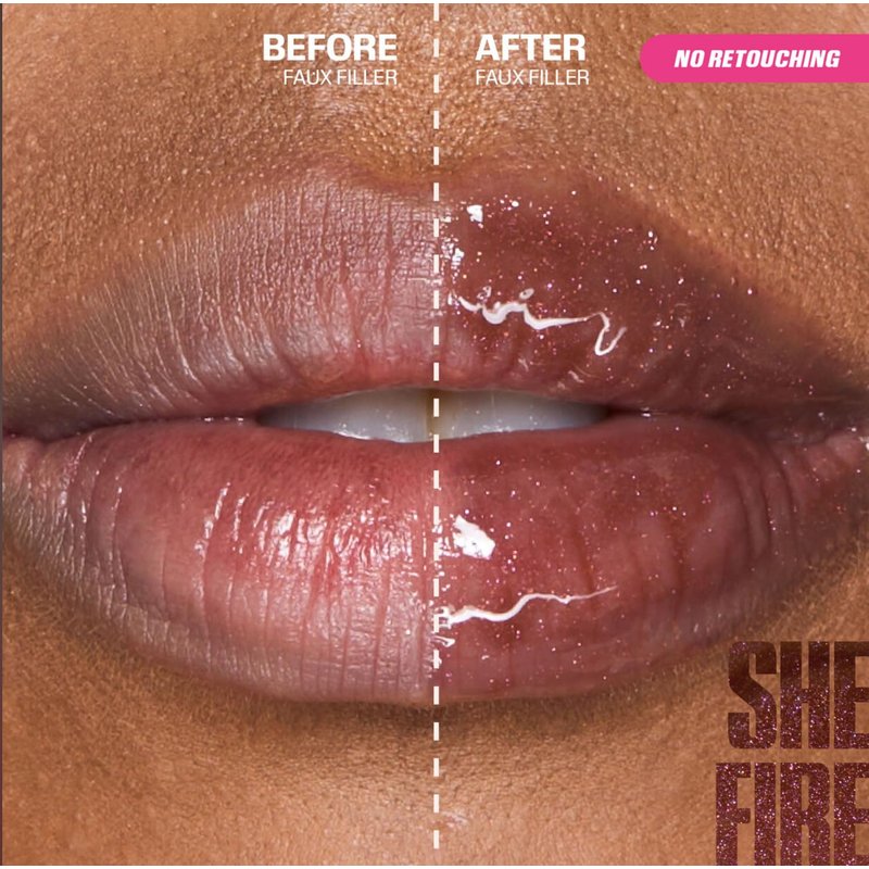 Huda Faux Filler Icy Nude Shimmer Lip Gloss - She Fire (sheer deep brown) - 0.13 fl oz / 3.9 mL. What it is: A hydrating, non-sticky lip gloss for high-shine lips that visibly smooths and blurs fine lines. What Else You Need to Know: The hydrating, fine-line smoothing formula melts onto the lips with a non-stick, reflective ‘glass-like’ finish. Packed with lip-loving, active ingredients like vitamin E and infused with vegan collagen for comfortable coverage that moisturizes the lips. It comes along with a big juicy doe foot with an innovative reservoir that holds the max formula for instant glossy lips. INGREDIENTS: Diisostearyl Malate, Polybutene, Bis-Behenyl/Isostearyl/Phytosteryl Dimer Dilinoleyl Dimer Dilinoleate, Ricinus Communis (Castor) Seed Oil, Vp/Eicosene Copolymer, Polyphenylsilsesquioxane, Glyceryl Behenate/Eicosadioate, Silica Dimethyl Silylate, Cocos Nucifera (Coconut) Oil, Calcium Aluminum Borosilicate, Ethyl Vanillin, Tocopheryl Acetate, Flavor/Aroma, Hydrolyzed Vegetable Protein, Silica, Tin Oxide, Iron Oxides/Ci 77499, Titanium Dioxide/Ci 77891, Iron Oxides/Ci 77492, Red 7 Lake/Ci 15850, Iron Oxides/Ci 77491.