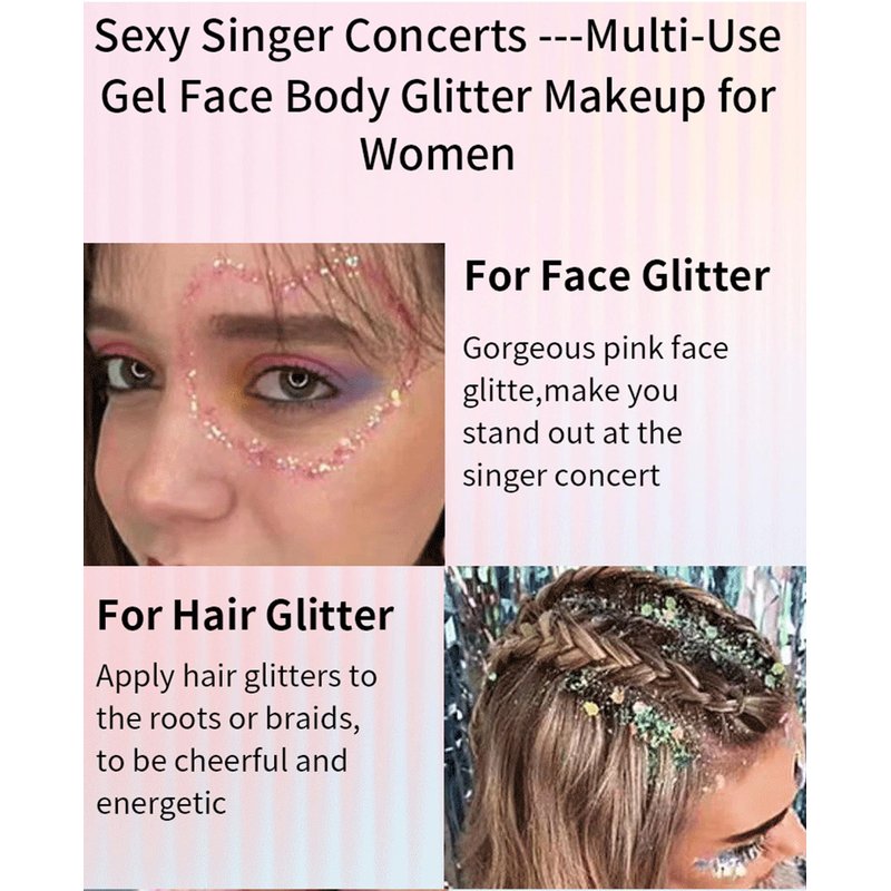 - Holographic gel glitter sequins colorful polarized stage makeup is suitable for stage performances and party makeup, allowing you to exude a charming light under the lights.It is very suitable for decorating the body, nails, and face to create a shiny artistic makeup look.