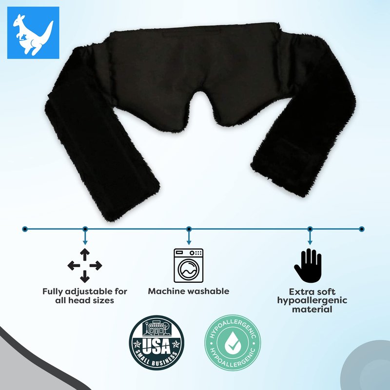 - Extra Plush, Fully Adjustable for All Head Sizes — Huggaroo Gem is hypoallergenic and doesn't irritate or scratch, because it is specially designed for sensitive skin. The huggaroo's hand-filled clay beads that retain heat or cold for up to 30 minutes without a cord or electric. Huggaroo's cover is removable for easy washing between clients or uses