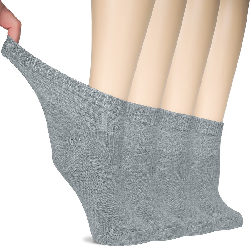 Hugh Ugoli Diabetic Socks for Women, Super Soft & Thin Bamboo Ankle Socks, Wide & Loose, Non-Binding Top & Seamless Toe, 4 Pairs, Light Grey, Shoe Size: 6-9