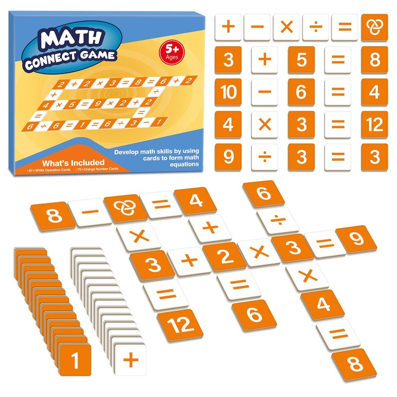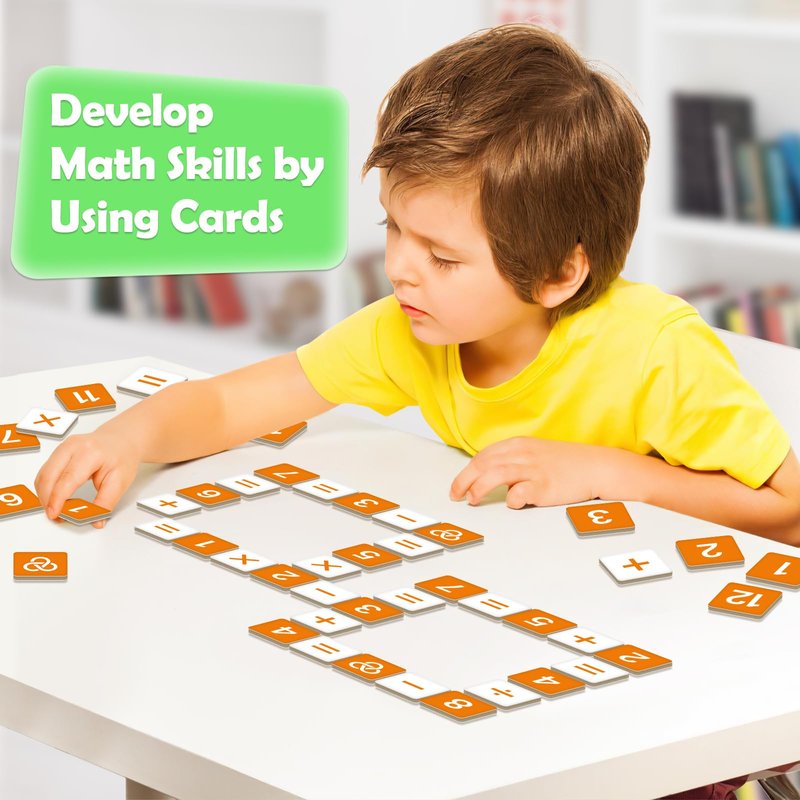 - Math Manipulatives: The math game set features 75 orange number flash cards, 87 white cards, and 1 guide. This math board game is designed for multiple players and makes learning addition, subtraction, multiplication, and division enjoyable with these flash cards.