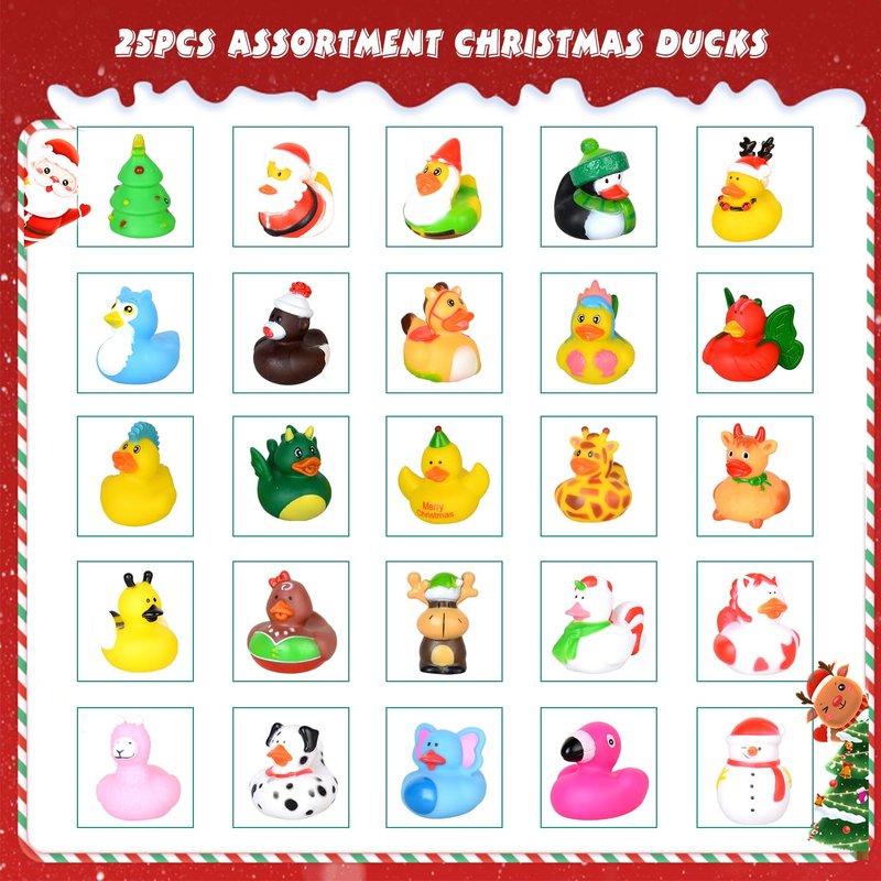 - 【Christmas Ducks】:There are 25 different elements designs of christmas ducks here(Each style 2 only), with various colors and designs. When Christmas comes, These colorful and cute ducks will definitely be loved by children! Our advent calendar duck can bring endless fun and surprise to children and add excitement to the festive atmosphere.