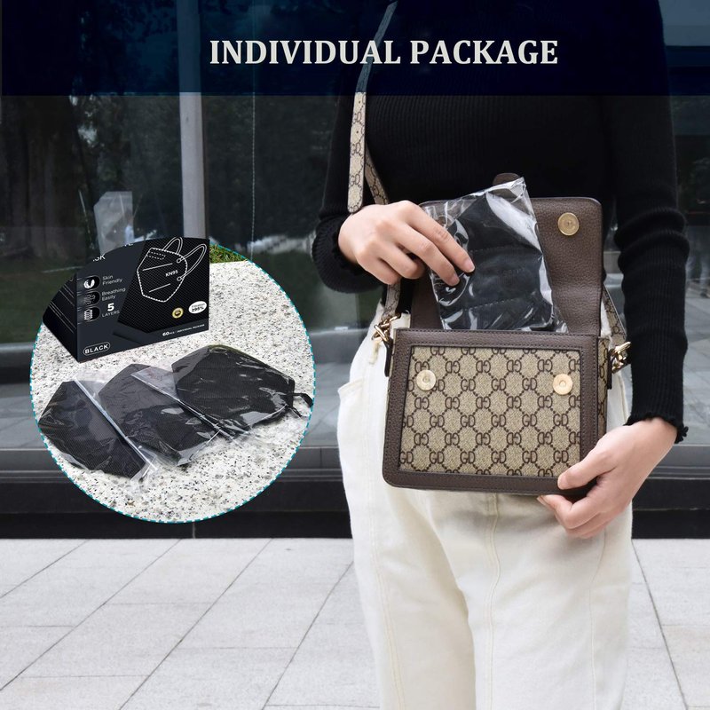 HUHETA KN95 Face Mask 60 PCs, 5-Ply Safety Masks for Men & Women, Filter Efficiency>=95% (Black Mask)