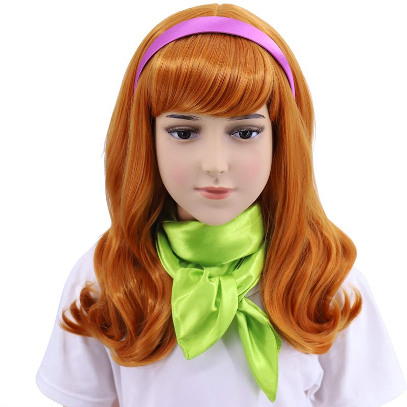 Hulaidywig Orange Cosplay Costume Wig for Kid's and Headband + Green Scarf