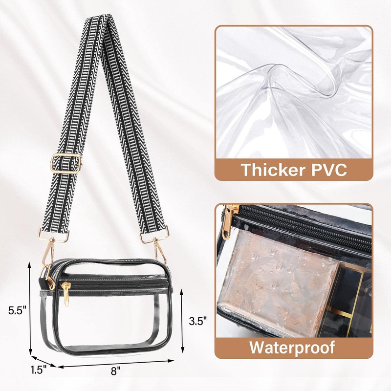 - Durable and Easy to Clean: Our clear crossbody bag is made of 0.6mm thick waterproof PVC material without harmful chemicals, ensuring durability and easy cleaning for your next use.