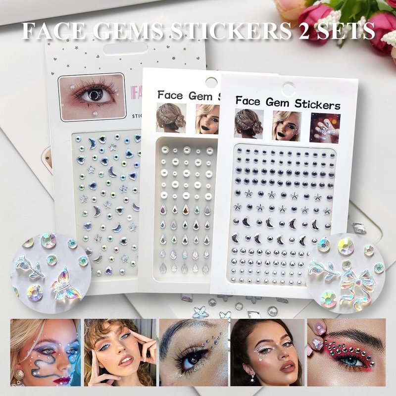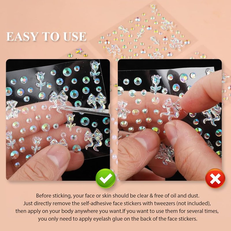 - Reliable Material:Our face diamonds are are made of quality acrylic resin,sturdy,reusable and durableNo harm to your skin.With strong adhesion,the face jewels are not easy to fall off.But AVOID using on sensitive & allergic skin
