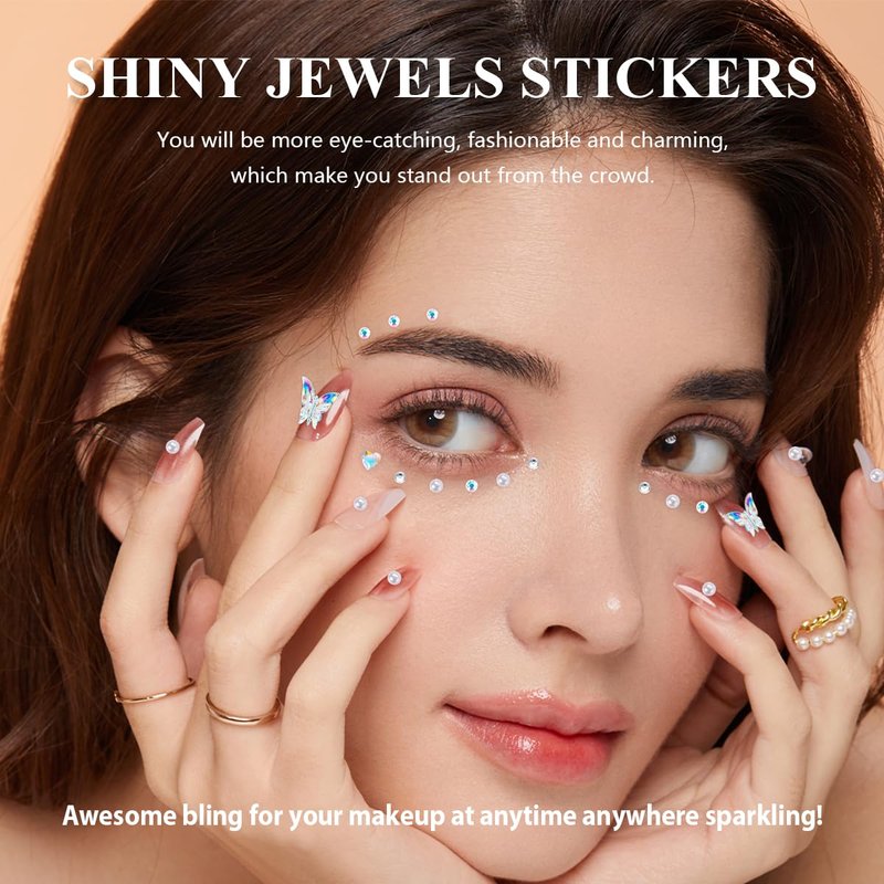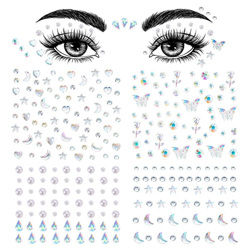 - Set Contains:You will receive 4 sheets of decorative face jewels stickers with different styles and sizes.(Include:round,star,water drop,love heart,moon,butterfly,flower,Bow,diamonds,Gem,pearls,etc.)Enough quantity and different styles can meet your makeup needs and DIY decorations