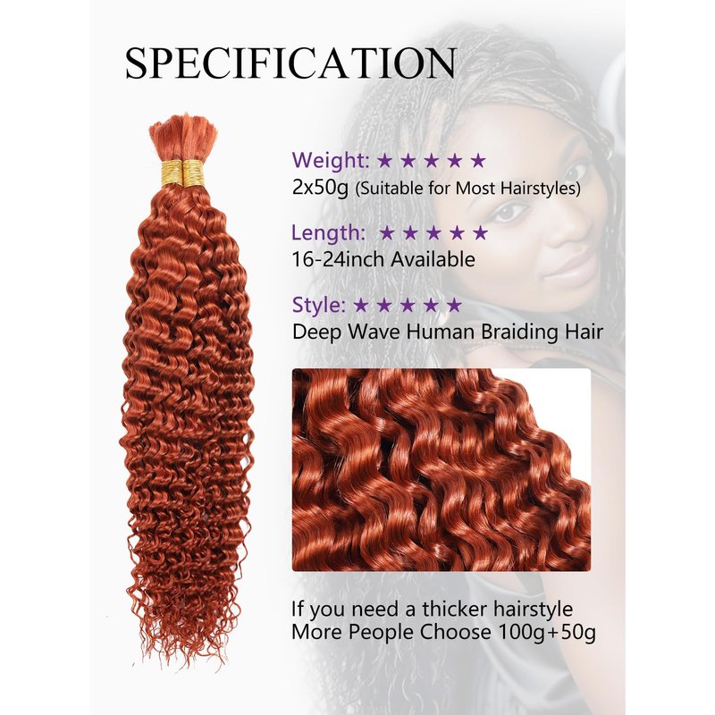 - Correct Length and Color: Human hair for braiding with a wide range of styles (Deep wave human braiding hair and water wave human braiding hair), lengths(16-36inch); If you find some brown hairs in your hair, don't worry because we use virgin hair that is unprocessed.