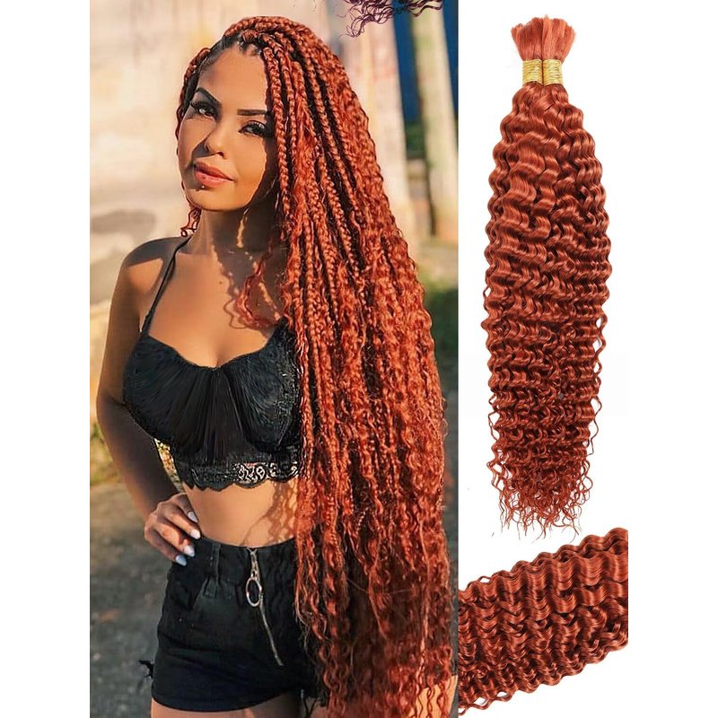 Human Braiding Hair 1 Bundle 100g 20 Inch Deep Water Wave Bulk Human Hair for Braiding No Weft 10A Brazilian Virgin Curly Human Hair Extensions for Boho Braids Wet and Wavy Ginger Braiding Hair