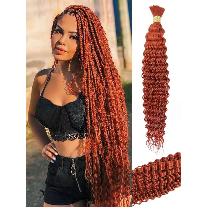 Human Braiding Hair 1 Bundle 50g 22 Inch Deep Water Wave Bulk Human Hair for Braiding No Weft 10A Brazilian Virgin Curly Human Hair Extensions for Boho Braids Wet and Wavy Ginger Braiding Hair
