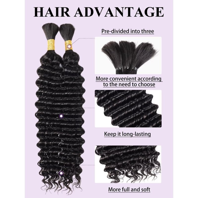 - Correct Length and Color: Human hair for braiding with a wide range of styles (Deep wave human braiding hair and water wave human braiding hair), lengths(16-25inch); If you find some brown hairs in your hair, don't worry because we use virgin hair that is unprocessed.