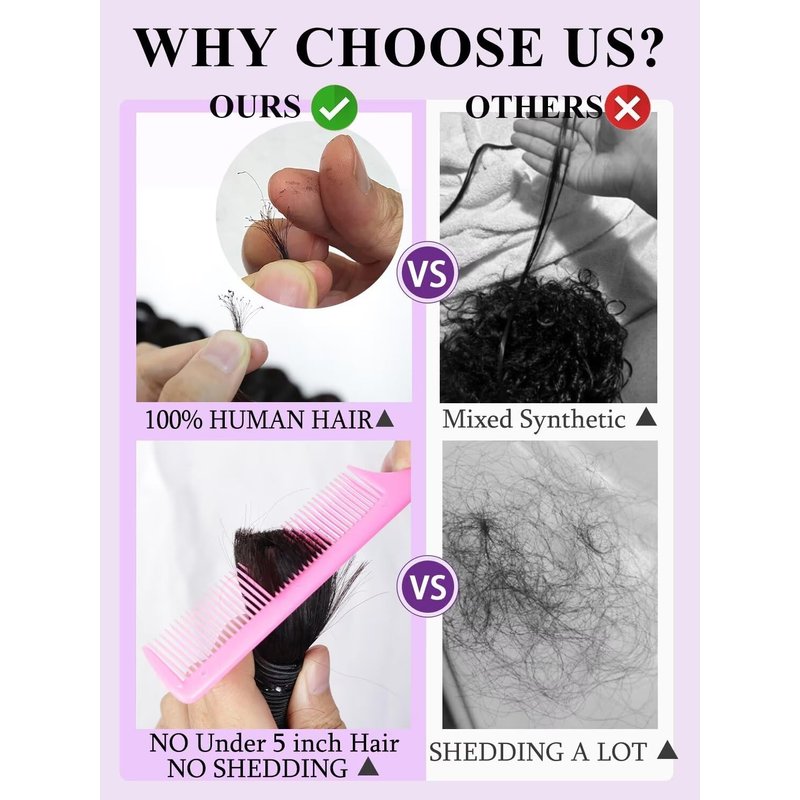• More Widely Used: Human curly braiding hair offers great versatility, not only suitable for Bohemian Braids, Knotless Braids, Boho Locs, and Box Braids, but also allowing easy styling for different fashion-forward looks. It is a trusted product that empowers women to embrace their unique style and charm while achieving multiple trendy hairstyles.