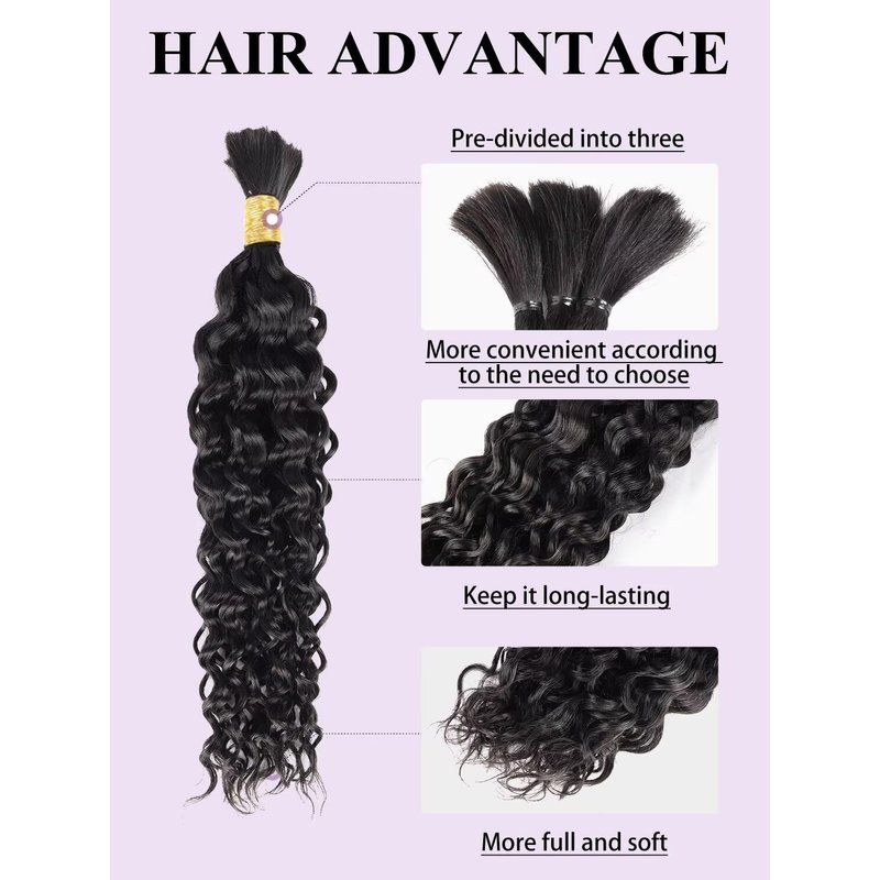 • Long Duration: Due to its high-quality real hair composition, human braiding hair wet and wavy is exceptionally durable, maintaining its aesthetic appeal for extended periods. This ensures you can confidently wear these hairstyles without worrying about premature damage or shedding.