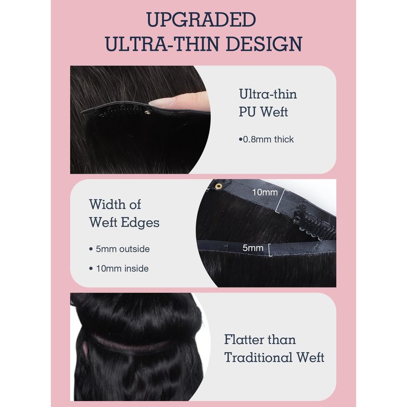 - Seamless Clip-In Hair Extensions: Our clip ins real human hair are crafted with ultra-thin 0.8mm PU weft for ultimate seamlessness and breathability,featuring a 0.5cm wide adhesive for secure attachment, providing a seamless blend with your natural hair.