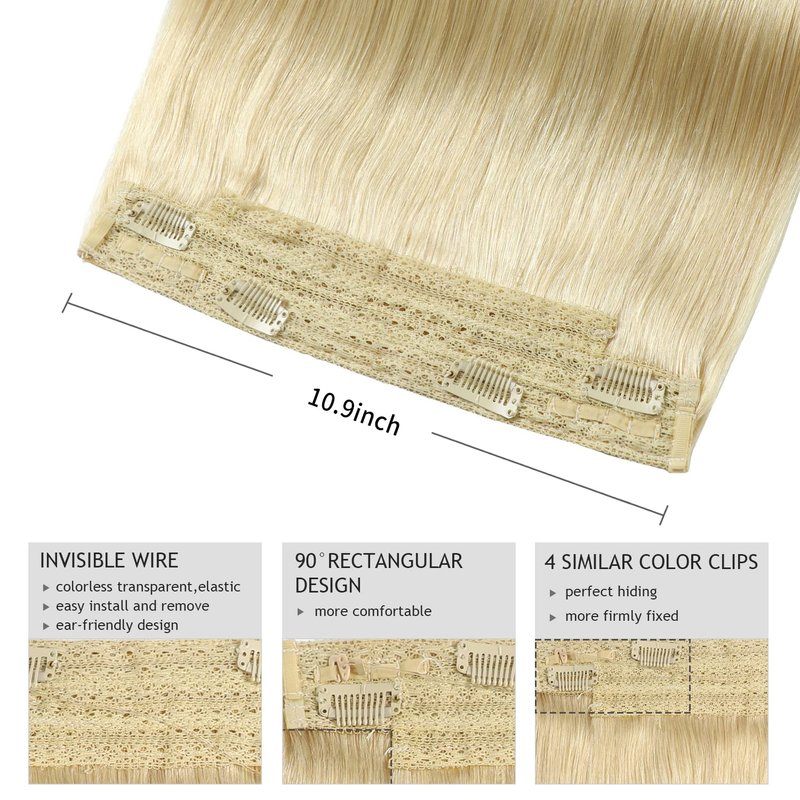 Human Hair Extensions Wire Hair Bleach Blonde,12 Inch #613 Hairpiece Remy Human Hair Extensions,70g Wire Hair Extensions by YILITE(12inch 70g Bleach Blonde)