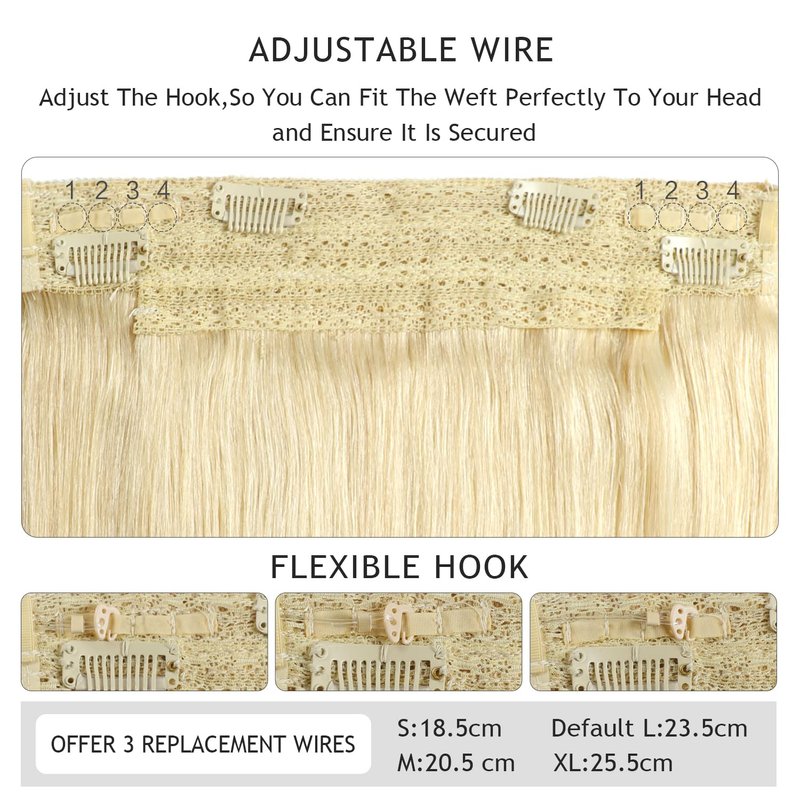 - 【Quick & Long Lasting Wear Wire Hair Extensions】 Wire hair extensions real human hair are super easy to apply and remove, you can add volume and length to your hair in just 1 minute. It can blend perfectly with your hair with the adjustable invisible transparent wire and the clips on the lace weft. Hair doesn't move when you shake your head, which means you're wearing it correctly.