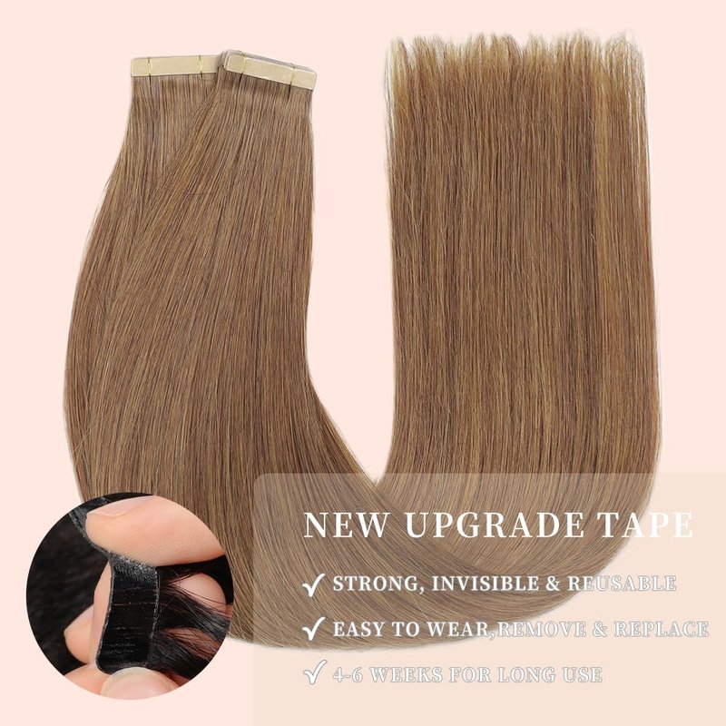 Human Hair Tape in Hair Medium Brown 22 Inch 20pcs Seamless Skin Weft Tape in Hair Extensions Straight Double Sided Remy Invisible Tape in Hair Extensions Human Hair (10#,22 Inch)