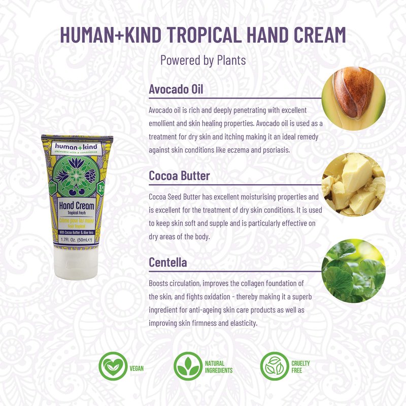 Human+Kind Moisturizing Hand Cream Tropical Fresh - Hydrating Cream with Avocado Oil and Shea Butter - Intense, Fast Absorbing Moisturizer for Smooth Skin - For Dry, Cracked Skin - 1.7 oz