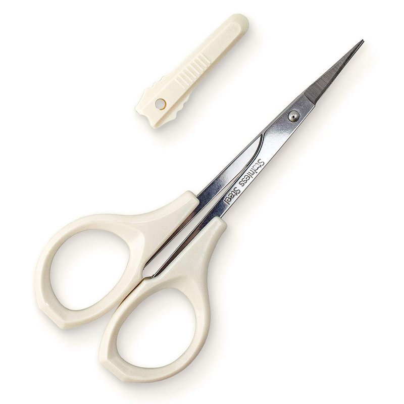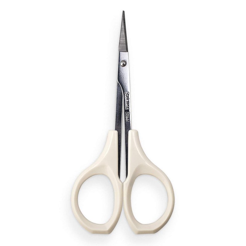 Humbee Eyebrow Scissors Self Care Tools Small Scissors for Facial, Nose, Eyebrow, Mustache, and Beard Hair Trimming & Grooming, Straight Edge, White Short Cap