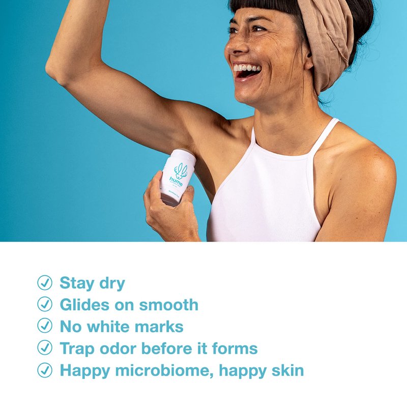 Hume Supernatural creates effective, clean deodorants with the latest scientific thinking. We realized clean deodorant REALLY SUCKED and got to work. The result? A plant, mineral, and probiotic-based deodorant. 100% Performance. Clean. Hume is an alternative to antiperspirant that actually works. Hume Supernatural will keep you dry, stain free and smelling like sunshine. Our cofounding team brings years of skincare and microbiome expertise to craft Hume’s breakthrough formula. Our plant-based actives work in 4 ways to: absorb moisture, trap and bind odor, support the skin microbiome and protect and nourish the skin. We use desert botanicals, known to survive in even the harshest environments, including prickly pear, aloe, cactus flower and blue agave. Next up, some of nature’s most effective super-absorbers with microporous structures including fossilized algae, kaolin, tapioca starch. Our prebiotic and probiotic blends are designed to help the good guys thrive. Clean Ingredient, Supernatural results. Aluminum Free. Phthalate Free, Paraben Free. Triclosan Free. Gluten Free.
