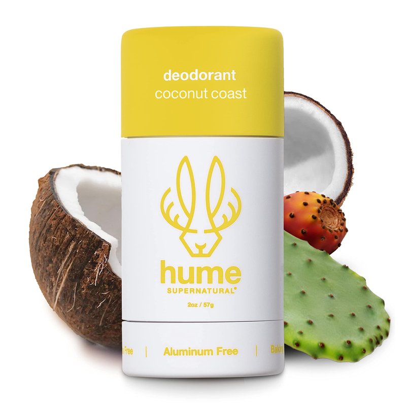 Hume Supernatural Aluminum Free Deodorant for Women & Men - Safe for Sensitive Skin - Probiotic, Plant-Based, Baking Soda Free, Aloe, & Cactus Flower, Anti Sweat, Stain & Odor - Coconut Coast 1-Pack