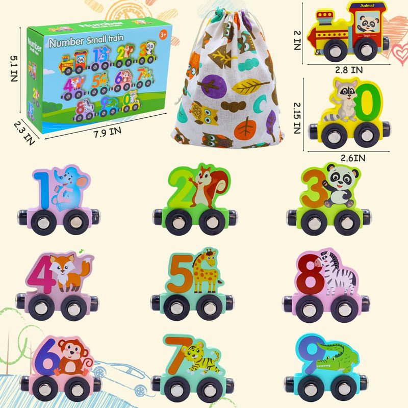 Humerry Train Set for Toddlers 2-4, Wooden Animal Magnetic Train Toy, 11 PCS Number Trains Learning Activities for Kids, Birthday Gifts for Boys, Girls