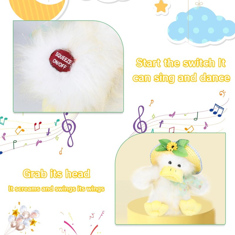 • 【Features of the toy:】 In addition to its novel design, the duck is made of fabric using various techniques to look more upscale. The pleasant music combined with the cute actions makes it more appealing to children.