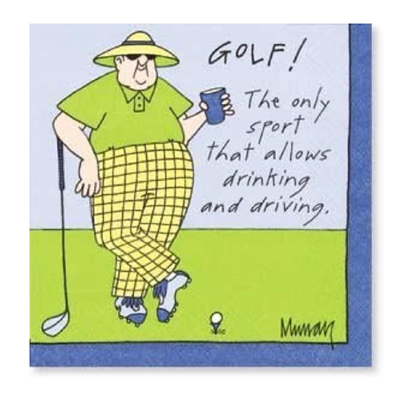 This zany napkin is imprinted with the following funny statement: "Golf! The only sport that allows drinking and driving."