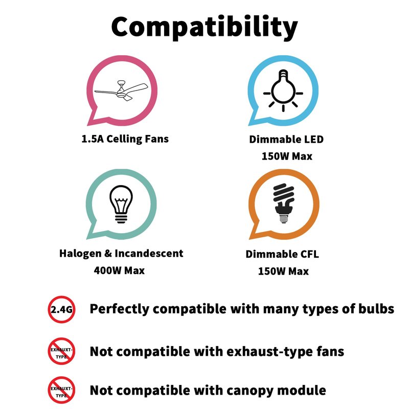 - 【 NO Buzzer noise 】 NO dimming function This universal ceiling fan remote is Designed to be no buzzer noise so as not to affect others , only control by turn ON/OFF.