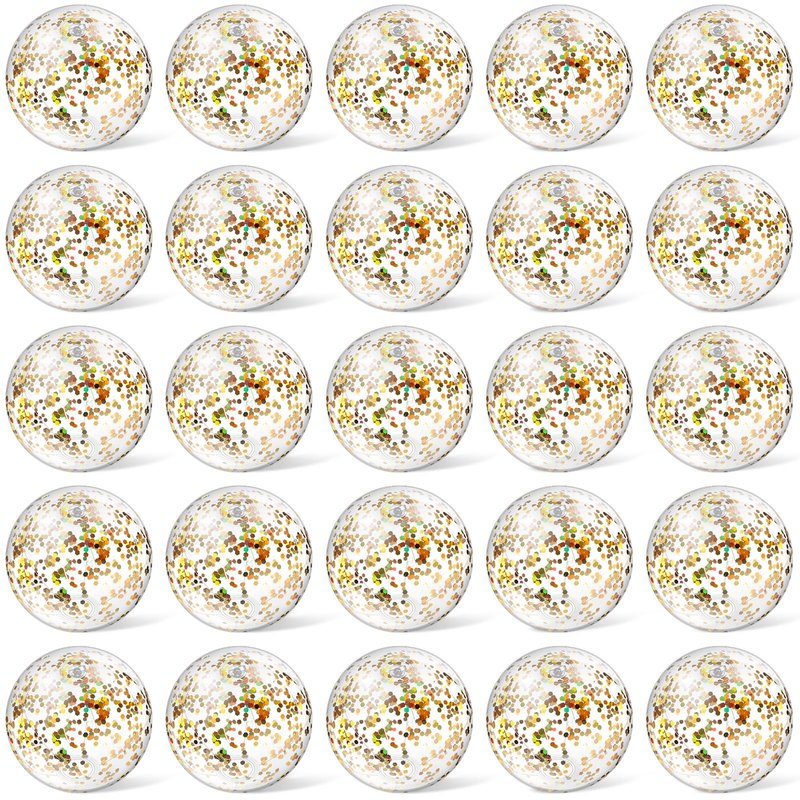 Features: Our pool balls for swimming pool mainly come in gold color, filled with confetti, glitter and attractive. Please gently pat the confetti before use for better playing experience. These mini balls are ideal toys and supplies to spend a pleasant and joyful family union time with your kids, mother, father, sisters, brothers and more, nice to close your ties and relationship. Specifications: Material: PVC Color: mainly gold Size: about 6 inches before inflation and 8 inches after inflation Package includes: 25 x Glitter beach balls Notes: Manual measurement, please allow slight errors on size. The color may exist a slight difference due to different screen displays. Please kindly note that children under 12 years old need to use it under adult supervision.