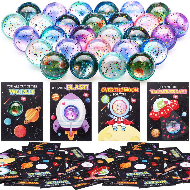 - Nice Presents Sets: our space themed Valentine's card and bounce ball party favor are ideal to send your students and mates on Valentine's Day, which can not only bring them some interesting playing props, but express your sincere wishes for them on this romantic day, creating a funny atmosphere on Valentine's Day