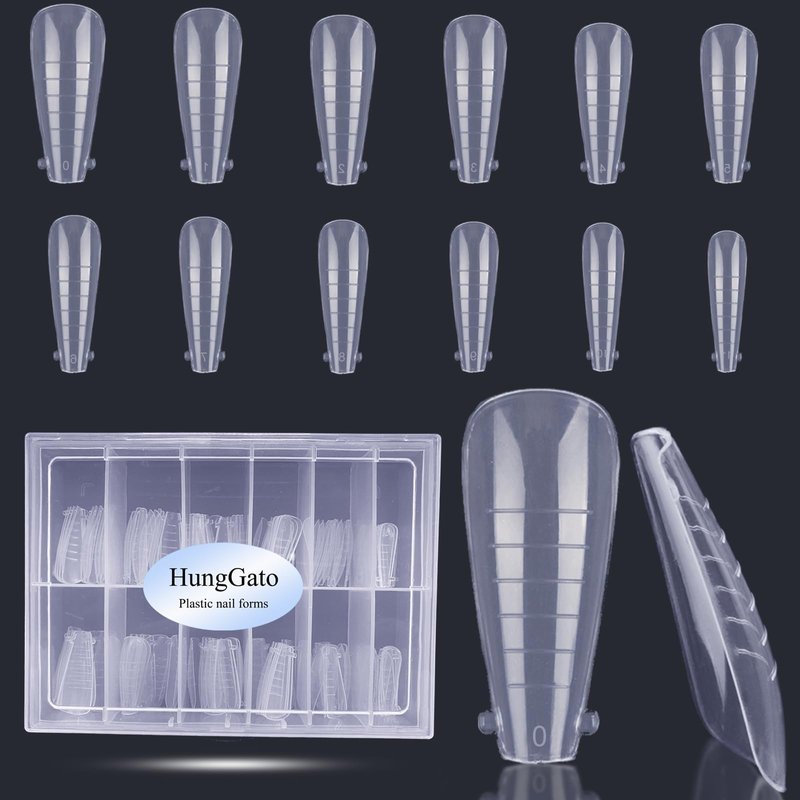 HungGato 120Pcs Dual Nail Forms Ballet Coffin Extension Poly nail gel Nail Forms Full Cover Reusable Nail Molds 12 Sizes for Gel Manicure Nail Art Design Salon DIY at Home