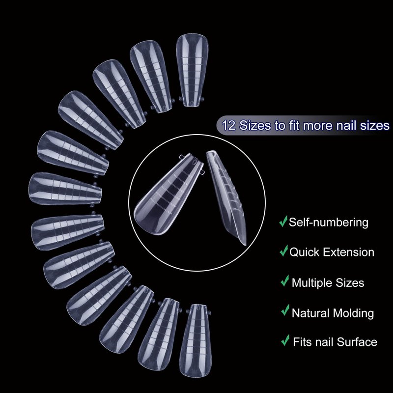 - [EASY TO DISTINGUISH]: The 120PCS professional nail forms come in 12 sizes to fit most fingers, 10 of each size in 12 compartments in the box. The pre-numbering on the top of the nail molds helps you choose the correct nail size quickly and easily.