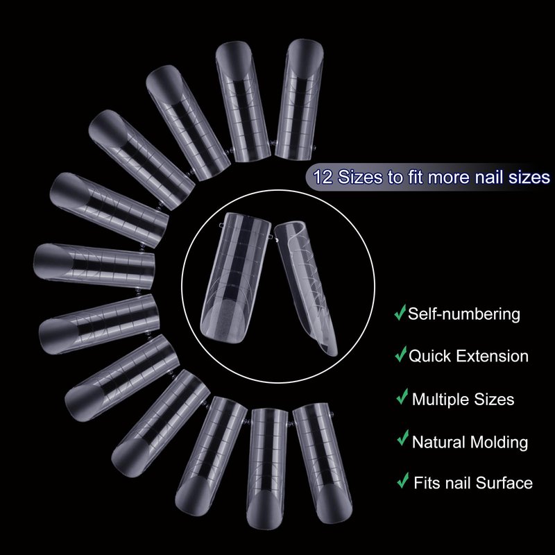 - [EASY TO DISTINGUISH]: The 120PCS professional nail forms come in 12 sizes to fit most fingers, 10 of each size in 12 compartments in the box. The pre-numbering (0-11) on the top of the nail molds helps you choose the correct nail size quickly and easily.