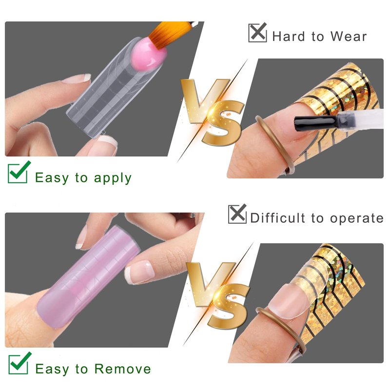 - [APPLICATION]: These acrylic nail forms prevent any leakage or smudging during the process of extending gel nails. Suitable for nail technicians, students, housewives and nail salons, ideal for beginners and professionals, and also as Halloween/Christmas/Valentine's Day gifts.