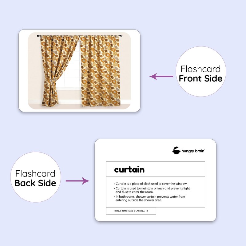 hungry brain Flash Cards for Toddlers, 24 Things in My Home Flashcards, Double-Sided, Montessori, Educational, Kindergarten - Preschool Learning Activities, Gifts for Kids, 1, 2, 3, 4 Years Babies