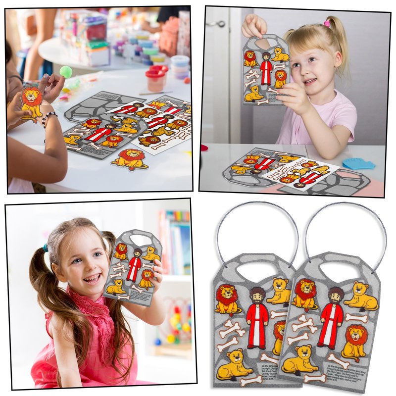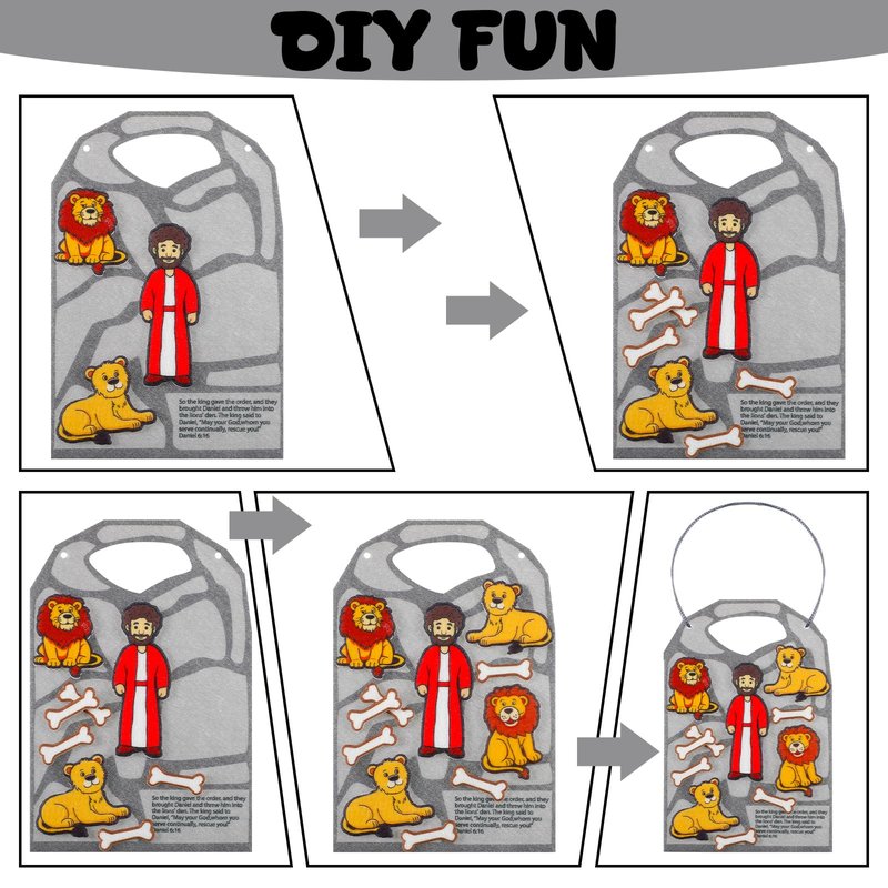 - Engage in Bible Storytelling with Felt Craft Kits: teach children the story of Daniel and the Lions Den in a fun, engaging way with our Daniel and the Lions Den craft for kids; This cute, colorful felt craft kit includes 24 pieces, each measuring about 5 x 7.48 inches; Ideal for Sunday School crafts or Bible games for kids, this is an ideal way to bring Bible stories to life