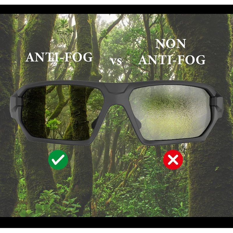 - 【NON-POLARIZED Anti-fog PC Clear Lens Cat.0】Ballistic impact-resistance lenses provide fog-free vision for longer time than the normal anti-fog lenses. They are water-washable and are more durable. To ensure the anti-fog effect, leave the lenses dry completely before using. Cleaning the lenses with the microfiber pouch or rinse with water only. Avoid using any detergents or soap to effect the anti-fog function.