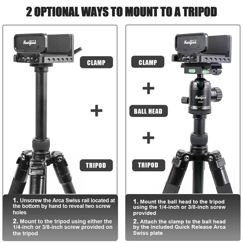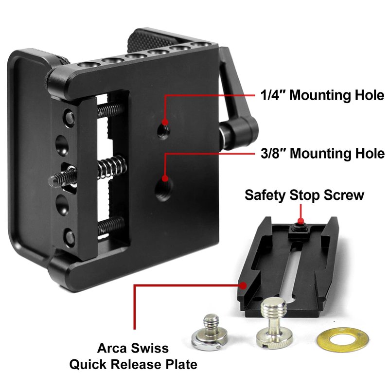 - MULTIPLE OPTIONS: The Arca-Swiss plate at the bottom can be mounted on a tripod head, and also removed to expose 1/4”-20 and 3/8”-16 threads that can fit most tripod or bipod setups.