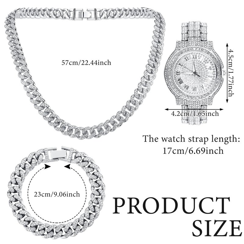 - Delicate Appearance for a Stylish Statement: adorned with rhinestones, this hip hop link chain for men exude luxury and sophistication; The intricate craftsmanship and attention to detail in the design make these accessories an eye catching addition to any outfit; Whether worn for a special occasion or to add a touch of elegance to your everyday look, this jewelry set ensures to make a stylish statement