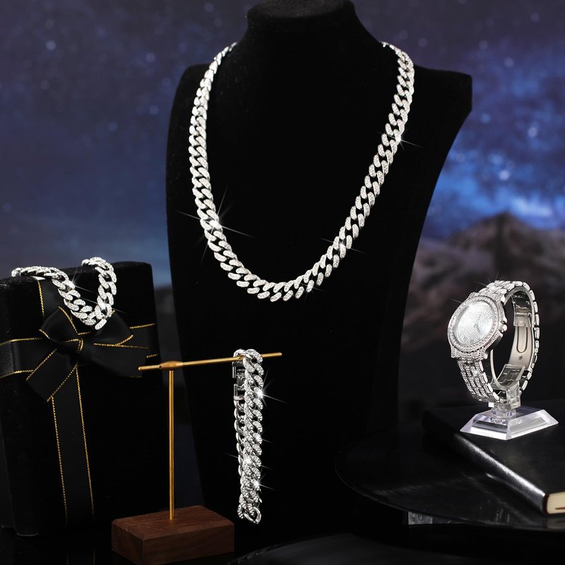 - Versatile and Complete Jewelry Set: you will receive 4 pieces of men jewelry set, contain 1 piece of necklace, 2 pieces of bracelets and 1 piece of men's diamond watch, giving you the freedom to mix and match or alternate between styles; Expand your collection, experiment with different combinations, and let your unique personality shine through with this versatile jewelry set