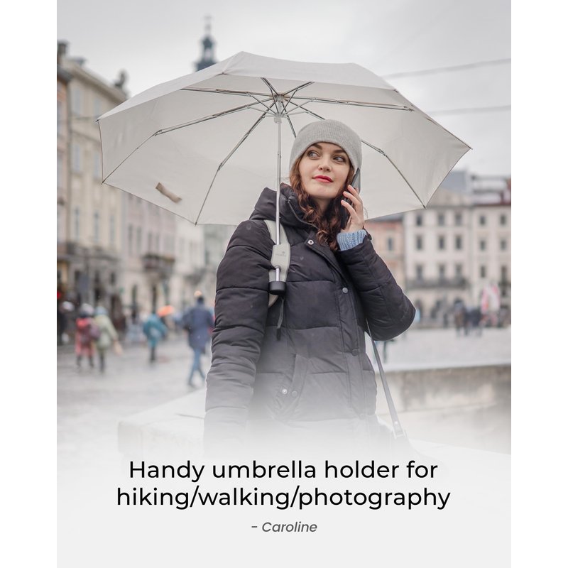 - Won’t Tire Your Shoulders - Best suited for medium body sizes. Our attachable umbrella holder is lightweight and won’t slow you down. Made for your active life, our umbrella holder can be used with any 8-10mm compact umbrella for travel, work, commute and daily activities.