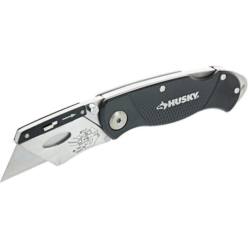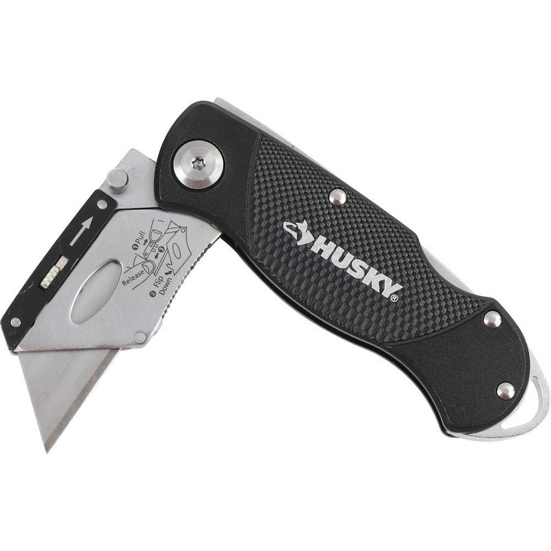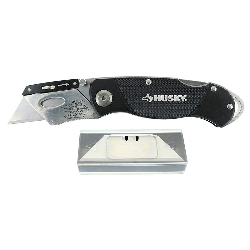 Stripping wires? Check. Ripping up carpet? Check. Opening boxes? You betcha. There are plenty of things you’ll need a utility knife for, and the Husky lockback folding knife is the one to do those things for you. Don’t worry about misplacing this unit. A sturdy metal clip on its side keeps it attached to your pockets or work belts, and its strategically placed lanyard hole keeps it available for twine, keychains, or lanyards. It has simple blade removal mechanics, but it’s sturdy enough that you can be sure they won’t fall out for heavy-duty applications. You’ll be able to keep a grip on this, too. Its aluminum frame is notched, providing a high-friction texture that gives you improved control. When the time comes to switch your blade out, there are 10 available for use in this package, so you won’t have to worry about going to the store for more any time soon after purchasing this. Trust a Husky to stay at your side for the toughest jobs.
